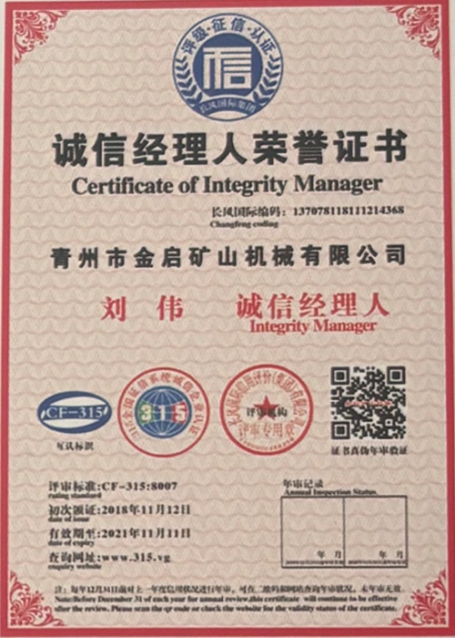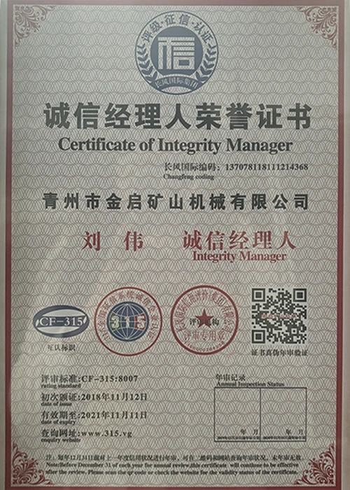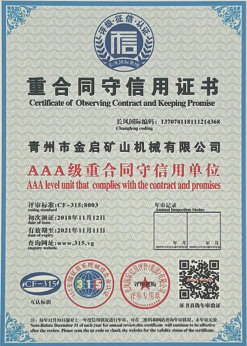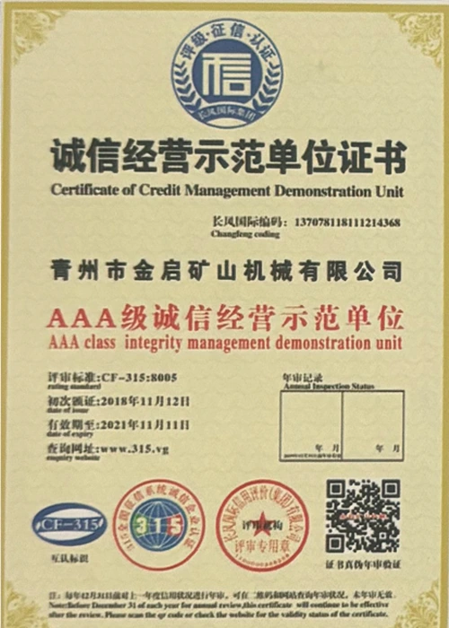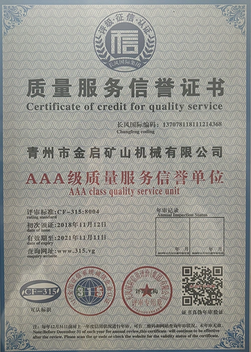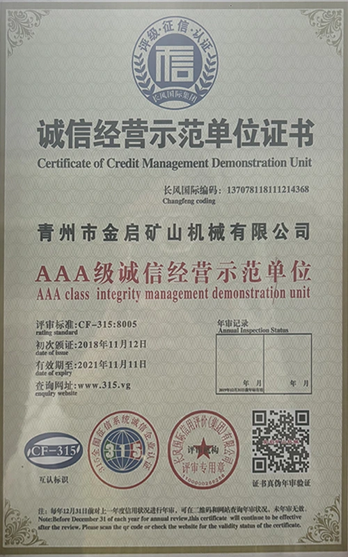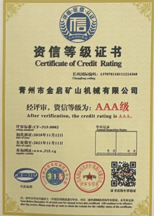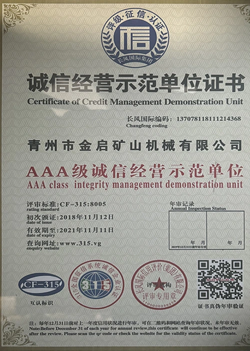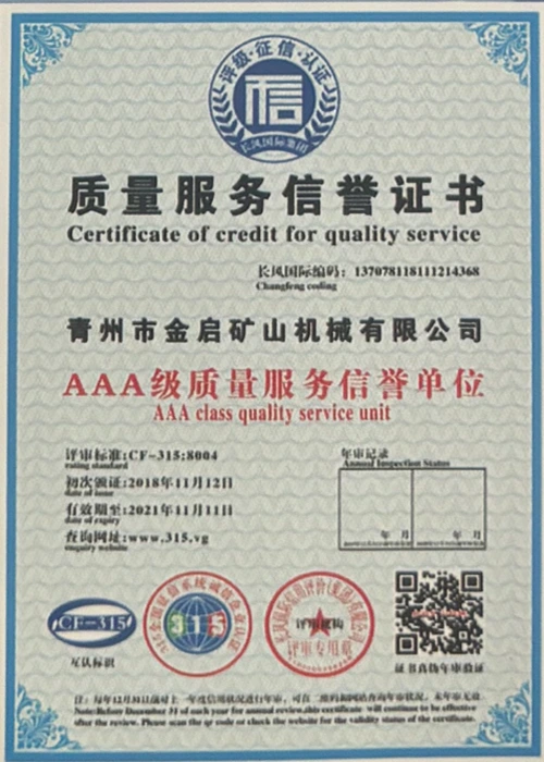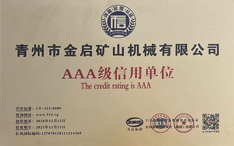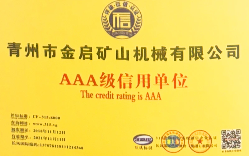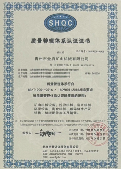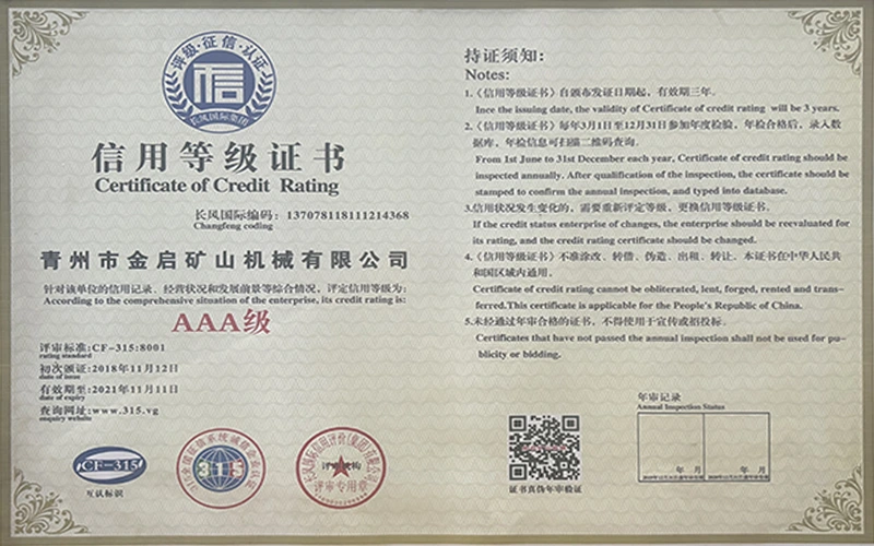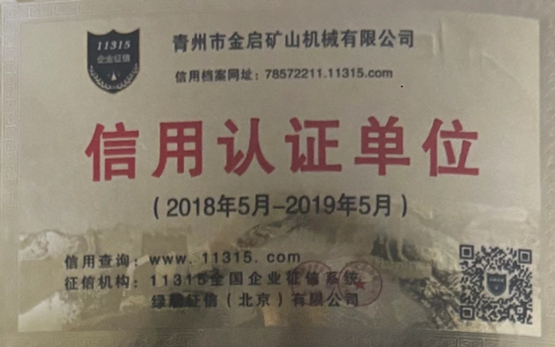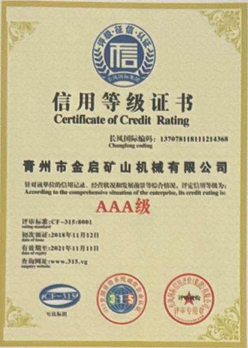 Med mange års dybdegående erfaring i branchen, afhængig af streng kvalitetskontrol og kontinuerlig teknologisk innovation, har virksomheden opnået en række autoritative kvalifikationer, certificeringer og patentcertifikater, herunder ISO kvalitetsstyringssystemcertificering, sikkerhedscertificering for minedrift, samt flere opfindelsespatenter og brugsmodelpatenter til optimering af udstyrsstruktur og garanti for dybtgående teknisk styrke og energibesparende teknologiopgradering af produktionen.