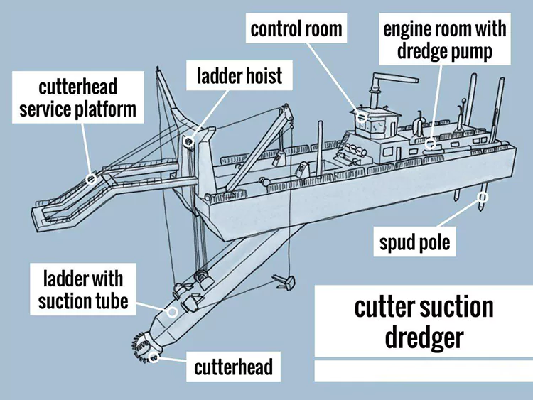 Kuttersystem: En spiralskærer er installeret i forenden, som løsner og knuser sand i floder gennem højhastighedsrotation, og er velegnet til forskellige jordtyper som sand, ler og sten.